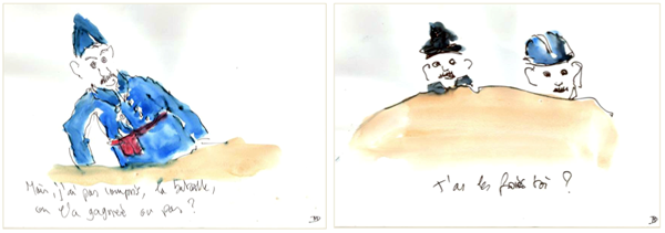 Quand je suis arrivée à Montpellier en 1997, j’étais dans le milieu du théâtre depuis 7 ans, et aussi une spectatrice passionnée et assidue. Durant les représentations, je dessinais dans le noir, à la plume et aux aquarelles, mes impressions du spectacle.