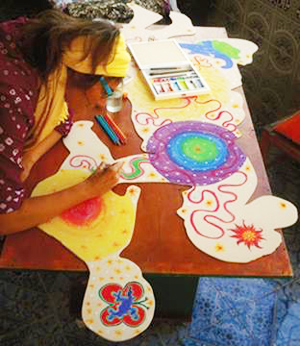 Installée à Tanger depuis 2010, elle a animé des centaines d’ateliers d’éveil du regard et art-thérapie (arts manuels, théâtre, danse libre…) auprès d’enfants, d’adolescents et d’adultes, notamment au sein de l’association Darna.