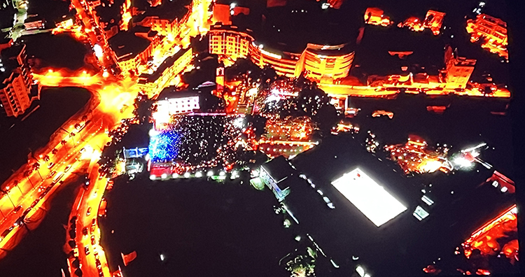 Comme pour prendre de la hauteur, un drone survole la foule et Tanger pour délivrer en temps réel des images inédites du spectacle et de la ville du Détroit.