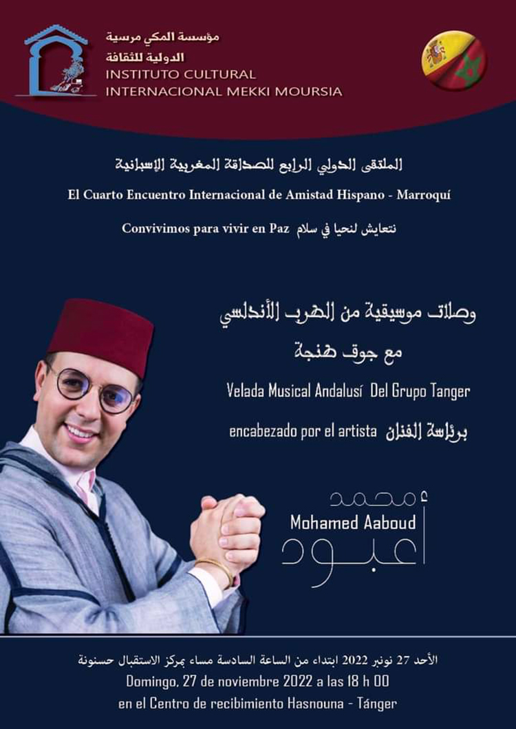 L’Institut Culturel International Mekki Moursia (ICIMM) organise du 25 au 27 novembre 2022 les 4e Rencontres Internationales de l’Amitié Hispano-Marocaine sous la devise : « Nous vivons ensemble pour une existence en Paix »