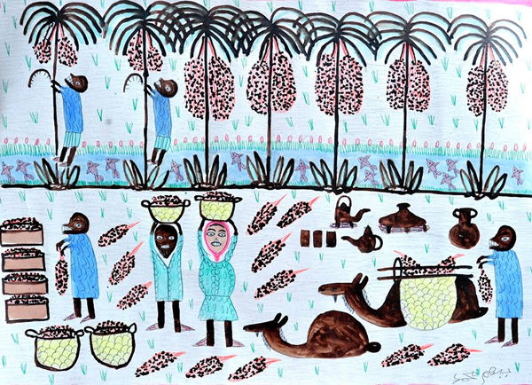 Il va au souk. Il montre ses dessins dans les échoppes, disant : » C’est mon neveu qui a fait ça. »