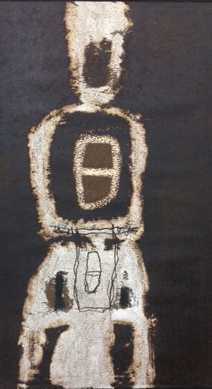 L’indéfectible intégrité de l’œuvre ne gomme pas les transitions entre les étapes de ce parcours impressionnant d’activité intense et de volonté de dépassement. Aux collages des années 80, des étalages de surfaces verticales heurtées de motifs indécis, succèdent des séries de toiles et de sculptures qui, écrit Jean Lacouture, consistent en un « assemblage de retenues passionnées », où peinture à l’huile et pastel se disputent les zones chromatiques d’une géométrie maitrisée. Les formes s’y échelonnent en un puzzle d’apparence sereine mais gravide d’événements à surgir. Elles ouvrent la voie aux peintures au fond noir que Testa, à partir de l’année 1994, compose au sotex et à la peinture à l’huile pendant une décennie. C’est, pour ma sensibilité et mon regard, la phase la plus puissante de l’art du peintre. Jean-Claude Roure ne manque pas de relever « le penchant pathétique » de ces toiles sombres et inquiétantes, où les motifs en beige et ocre figurent des silhouettes électrifiées, des êtres réduits en écorce aux contours tremblants. Les formes rectangulaires et ovales suggèrent des corps divisés, des parcelles d’humanité recousues de lambeaux de chair. Le motif supérieur donne souvent l’impression d’un visage trituré qui s’effile dans la nuit noire, épinglé à un buste ponctué d’ecchymoses et de chancres géants. Ce soupçon de tragédie n’est plus de mise dans les séries de cartons qui occupent la décennie suivante. Sur un fond gris, la couleur y disparaît au profit de lignes noires qui tournoient, s’emmêlent et se dénouent pour tisser des figures qui se dédoublent en une foule d’êtres dont ne subsiste que la trace d’une existence éphémère. Cette mélancolie tempérée culmine dans les derniers dessins et sculptures de l’artiste. Un tracé noir sur fond blanc érige des formes verticales traversées de hachures et de sutures, scindées en des blocs qui, dans un rythme bancal, se superposent comme des tours vulnérables mais d’une sobriété austère. C’est à la fois le propre et la force majeure de l’œuvre de Gérard Testa : contenir l’émotion pour n’en extraire que l’apparence, muer l’intériorité de l’homme en aspiration à un idéal d’équilibre et de silence.