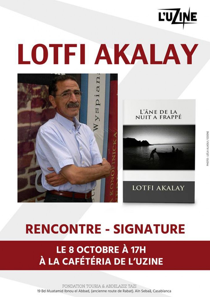 L’écrivain tangérois, Lotfi Akalay, présentera le 8 octobre prochain à l’Uzine de Casablanca son 10e livre: « L’âne de la nuit a frappé ! » Une série de nouvelles qui n’auraient peut être pas vu le jour sans la nuit!