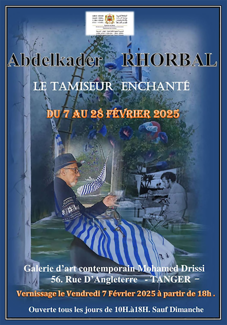 La Galerie d’art contemporain Mohamed Drissi et la Direction régionale de la culture Tanger Tétouan Al Hoceima proposent l’exposition d’art « LE TAMISEUR ENCHANTE » de l’artiste ABDELKADER RHORBAL du 7 au 28 février 2025.