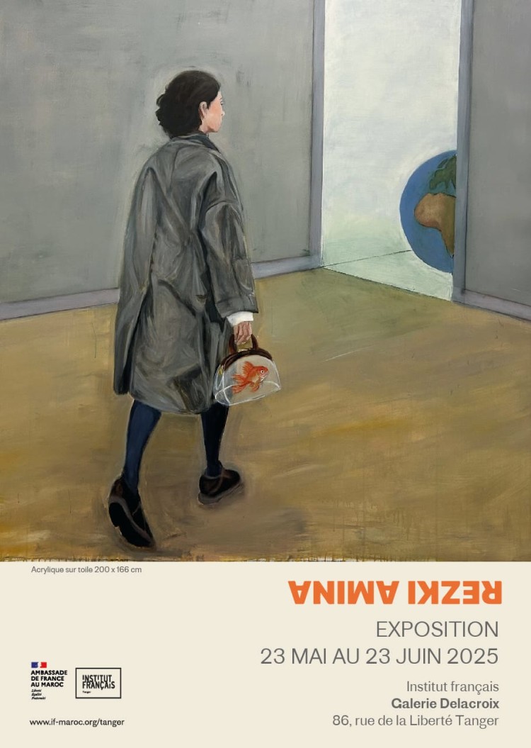 Amina Rezki a exposé en Belgique, au Maroc et en France, notamment à BOZAR (Bruxelles), au Cube – Independent Art Room (Rabat), à la Biennale des jeunes créateurs de l’Europe et de la Méditerranée, ainsi qu’au Centre Wallonie-Bruxelles à Paris. Son retour à Tanger, à l’occasion d’une exposition à la Galerie Delacroix de l’Institut français, résonne comme une boucle intime et artistique, entre mémoire, imaginaire et réinvention de soi.