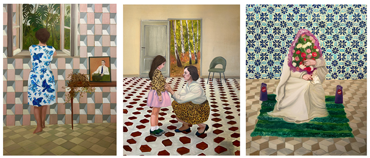 Née à Tanger, Amina Rezki vit et travaille à Bruxelles. Diplômée de l’Académie royale des beaux-arts de Bruxelles, elle développe une pratique artistique mêlant peinture, dessin au fusain et installation, où se croisent mémoire autobiographique, symbolisme et imaginaire onirique. Marquée par l’expérience de l’exil, vécue dès l’enfance, son œuvre explore les thèmes du déracinement, de l’identité fragmentée et des tensions géopolitiques, tout en conservant une forte dimension narrative.