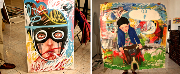 Eloge de l’absurdité d’un monde à grande vitesse, « faut raconter la tragi-comédie, dit il, atteindre un équilibre en assumant le trash et le kitsch » La solitude de l’artiste est dure, cruelle parfois, même s’il se fait rire souvent en peignant : « J’aime travailler dans mon atelier ici à Tanger mais j’ai besoin de m’en évader, de retrouver l’Espagne aussi…» DJ également, la musique est pour lui un univers parallèle indispensable, une communication universelle.