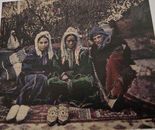 Dans la salle des autochromes, se trouvent une soixantaine de grandes diapositives, exposées en transparence dans des boites lumineuses accrochées aux cimaises. Ces autochromes réalisés entre 1934-1935 nous entrainent dans un véritable périple Marocain qui mêle paysages, villes et portraits, tous légendés. L’autochrome est le premier procédé industriel de photographie en couleurs mis au point par les Frères Lumière en 1905 : mosaïque d’innombrables et microscopiques grains de fécule de pomme de terre colorés en orange, vert et violet interposés ensuite entre une plaque de verre et une émulsion photographique au gélatino-bromure d’argent.