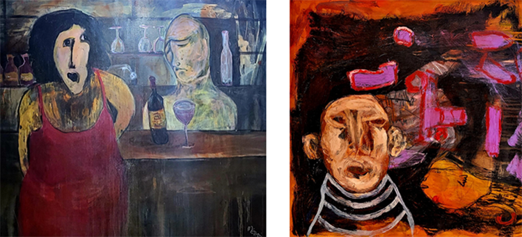 Abdellatif Mehdi, de son côté, plonge dans les recoins de l’inconscient, à travers une peinture expressionniste audacieuse et vibrante. Ses œuvres, souvent sombres et intenses, sont le reflet de ses explorations intérieures, marquées par des thèmes universels tels que la peur, le désir, et la libération des corps. Inspiré par l’œuvre d’Edvard Munch, Mehdi cherche à déchirer les voiles du réel pour atteindre une vérité plus profonde, souvent dérangeante, mais toujours authentique. Ses compositions puissantes, où la couleur et la forme s’entrelacent, sont une invitation à explorer les zones d’ombre de l’âme humaine.