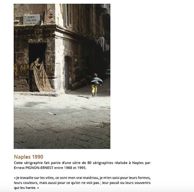 Par la facture puissante et comme intemporelle de ses images, par l’acuité de leur inscription dans le réel (choix signifiant des sites et des moments) les interventions d’Ernest Pignon-Ernest font de la rue un espace plastique, poétique, fictionnel, réminiscent, font des lieux et du temps l’oeuvre même, leur conférant le caractère de ready-made sans passer par la case du musée.