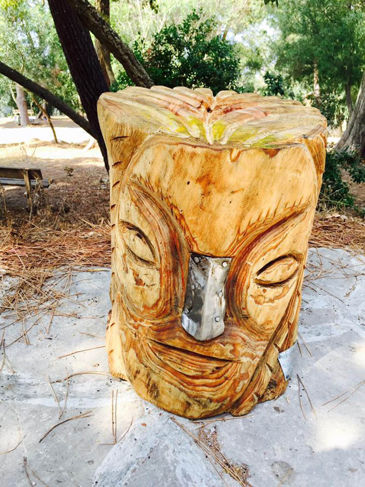 – Abdelhafid TAQOURAITE – 55 ans– Marrakech– ce sculpteur travaille avec des souches de bois brut récupérés dans le parc Perdicaris … Œuvres présentées : « Le Bonhomme de la Forêt » et « 3 gouttes d’eau »