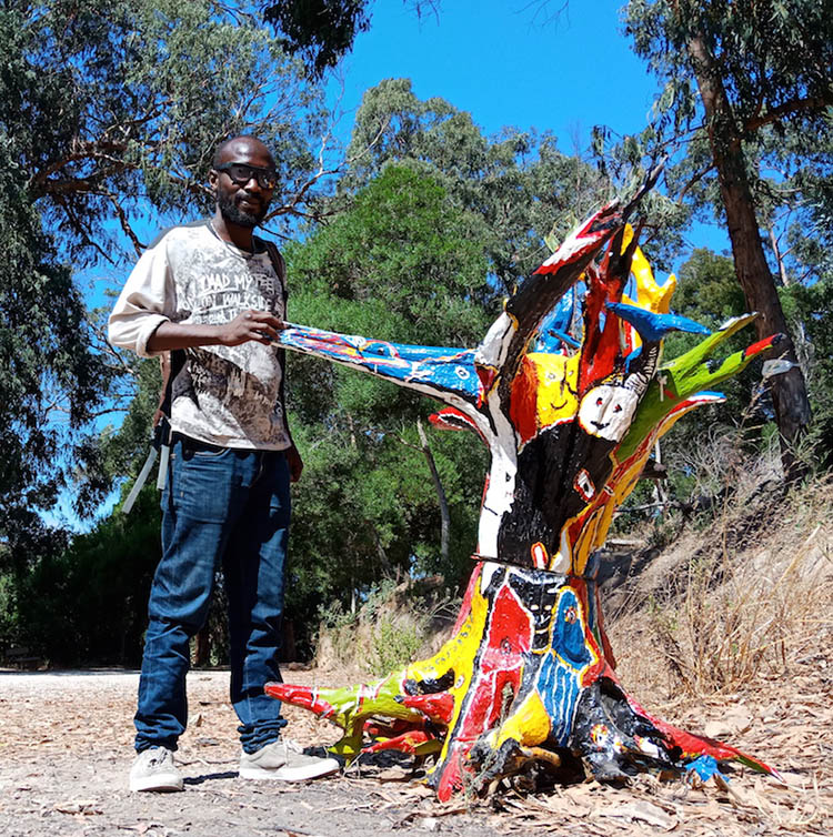 – Ahmed NDOYE – MIFA – 33 ans – Sénégal – ce sculpteur travaille essentiellement avec du sable coloré… Œuvre présentée : « Kourouknfouga »