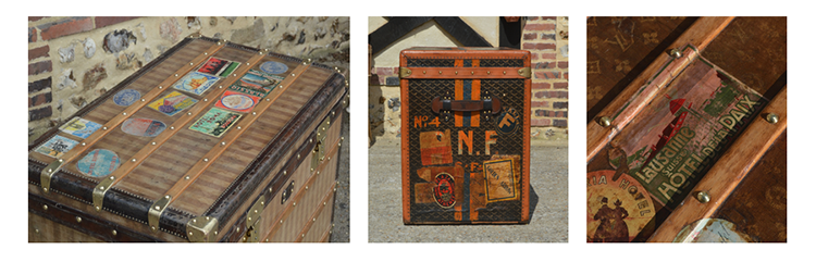 croisières, d’entreprise de transport des bagages des gares aux domiciles, des étiquettes de douanes, de transit, d’expéditeur, de garde meuble, store-room, etc., tous lieux où passaient les malles.