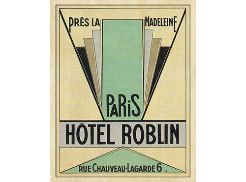 L’art du voyage. Les étiquettes d’hôtel étaient en 1900 des petites affichettes collées sur les malles et bagages par le personnel des hôtels du monde entier pour promouvoir un établissement. Beaucoup de mouvements artistiques ont influé sur le style de ces petites affichettes, de 1880 aux années 1960. On y retrouve notamment aujourd’hui l’art déco avec le grand Hôtel Roblin à Paris, l’Expressionnisme ou bien l’Art nouveau. Comme pour les affiches anciennes, les étiquettes d’hôtel témoignent du courant artistique en vogue lors de leurs créations et des habitudes des voyageurs.