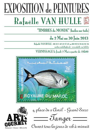 « Timbres du monde » est le thème de la prochaine exposition de Rafaëlle Van Hulle. Elle sera présentée chez Art & Gourmet à Tanger à partir du 2 mai (vernissage) jusqu’au 30 juin 2013.