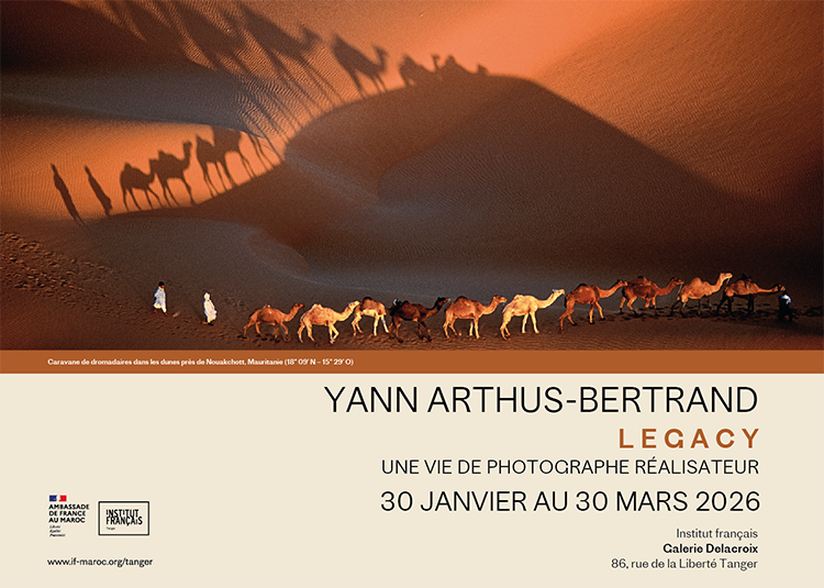 Du 30 janvier au 30 mars 2026, l’Institut français du Maroc à Tanger présente à la Galerie Delacroix l’exposition LEGACY – une vie de photographe-réalisateur, consacrée à Yann Arthus-Bertrand. Cette exposition d’envergure retrace plus de quarante années de création et d’engagement d’un photographe, réalisateur et militant écologiste dont l’œuvre a profondément transformé notre regard sur le monde, le vivant et les sociétés humaines.