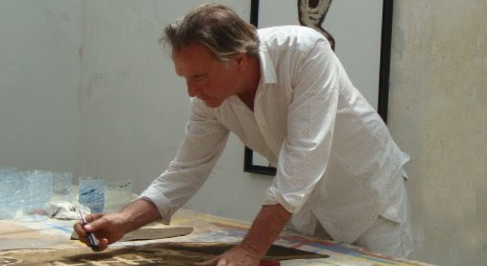 Le travail de l’artiste est marqué par la puissance de sa matière picturale, ses formes, ses coloris, aux éclats et tonalités inspirés du Maroc, pays dans lequel il décide de s’installer pour se nourrir de la transparence et de la profondeur des lumières du Sud dans la ville de Oualidia.