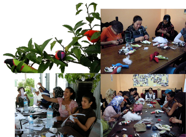 – une seconde phase de réalisation concrète, de fabrication des oiseaux avec découpe du tissu selon un patron, bourrage avec de la ouate et couture des contours.