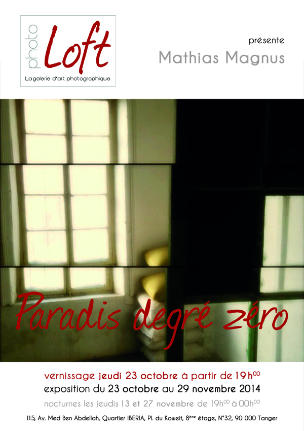 « Paradis degré zéro » est le titre de l’exposition que présente la galerie Phot Loft de Tanger pour montrer le travail de Mathias Magnus, alias Mathias Le Forestier du 23 octobre au 29 novembre. On est heureux de découvrir les oeuvres du Galeriste…