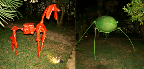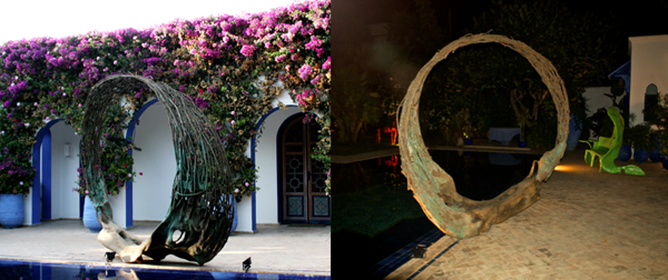 Un étrange bestiaire surgit dans le jardin de la Villa Amazonas, propriété de Bernard et Yann qui ont souhaité prolonger leur exposition d’Artingis « Résonance » en mettant en scène chez eux les sculptures monumentales d’Abdeljalil Saouli. Elles nous transportent dans un monde où la démesure côtoie la poésie, un jaillissement de la terre à la fois imaginaire et contemporain. Visiteurs du soir nous avons exploré émerveillés le parc servant d’écrin à ces œuvres superbement mises en valeur par la splendeur de la nature et le parfum enivrant des daturas blancs.