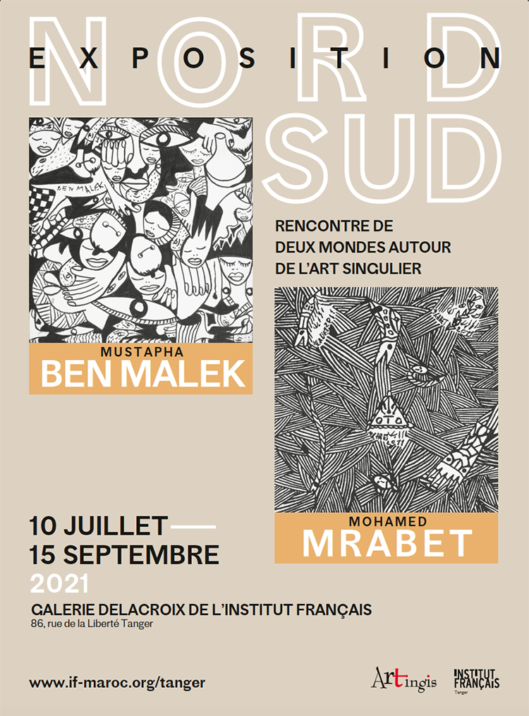 L’Institut français de Tanger en partenariat avec la Galerie Artingis présente l’exposition : « NORD-SUD – Rencontre de deux mondes autour de l’art singulier » avec Mohamed MRABET et Mostapha BEN MALEK du 9 juillet au 15 septembre 2021 à la galerie Delacroix. Une exposition exceptionnelle qui rassemble une centaine d’oeuvres pour chaque artiste.