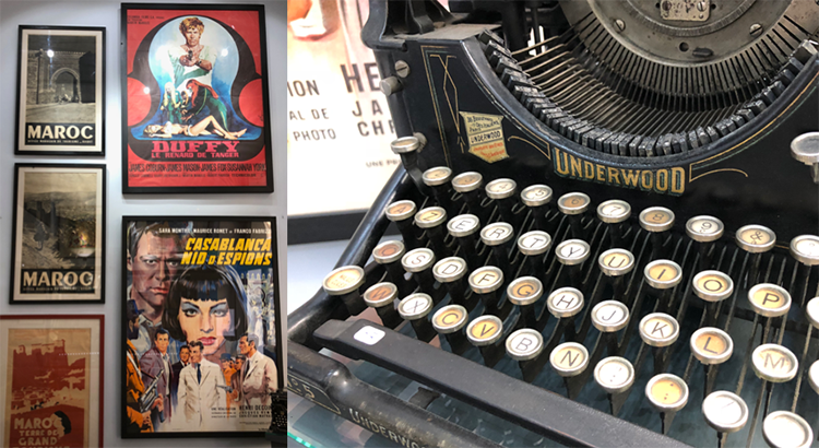 Yann sillonne le Maroc et Tanger de fond en comble à la recherche de ses objets de passion. Il fait toutes les brocantes, connait par coeur les marchands de Casa Barata. Sa présence sur les salons du livre avec ses précieux documents en fait un spécialiste incontournable des livres anciens et des vieux papiers d’histoires si bien qu’aujourd’hui on vient lui proposer spontanément, vieux bouquins, cartes postales, étiquettes d’hôtel, vieilles revues, journaux d’hier, affiches anciennes, vieilles cartes… sa maison de Marshan recelle d’un stock impressionnant.