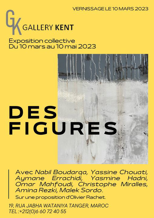 Exposition collective « Des Figures », avec Nabil Boudarqa, Yassine Chouati, Aymane Errachidi, Yasmine Hadni, Omar Mahoufdi, Christophe Miralles, Amina Rezki et Malek Sordo.