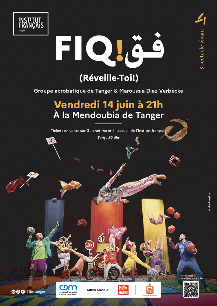 Après une tournée mondiale avec son spectacle FIQ ! (Réveille-toi), le Groupe Acrobatique de Tanger revient au Maroc pour une tournée nationale du 29 mai au 14 juin 2024, avec six dates à Oujda, Tanger, Kénitra, Agadir, Essaouira et Rabat.