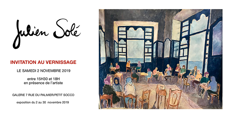 Julien Solé présente à la galerie Conil ses derniers travaux réalisés lors de plusieurs séjours à Tanger en 2018 et en 2019. On découvrira aussi quelques scènes de cafés d’Alexandrie, en Egypte.