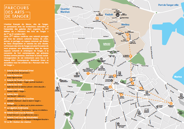 Le « Parcours des arts de Tanger » est ainsi l’occasion de proposer au public une déambulation dans les douze espaces culturels et artistiques de Tanger, à la rencontre de l’art contemporain, qui présente l’artiste comme penseur, chercheur et acteur social.
