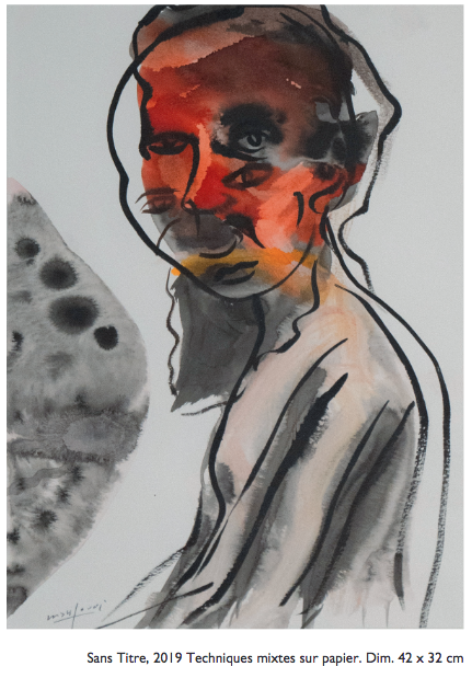 Omar Mahfoudi, dans son exploration de la figure humaine, utilise des techniques fluides pour exprimer la transformation et la fragilité, créant des oeuvres d’une