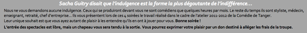 La COMEDIE DE TANGER, troupe francophone de théâtre amateur, présente en ce mois de septembre 4 spectacles modernes, drôles, acides, décalés, à la Salle Beckett à Tanger :