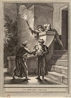 Dans cette fable rythmée et plaisante qu’est « Les Deux Amis », La Fontaine invite le lecteur à réfléchir sur l’amitié grâce à deux amis dont l’affection l’un pour l’autre est tellement sincère qu’elle semble relever de l’utopie.