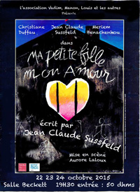 Les 22, 23, 24 octobre à 19H30 à la salle Beckett de Tanger, Jean Claude Sussfeld, Christiane Duffau, Meriem Benachenhou interprètent « Ma petite fille, mon amour », une pièce de théâtre de Jean-Claude Sussfeld créée le 1er octobre 1997.