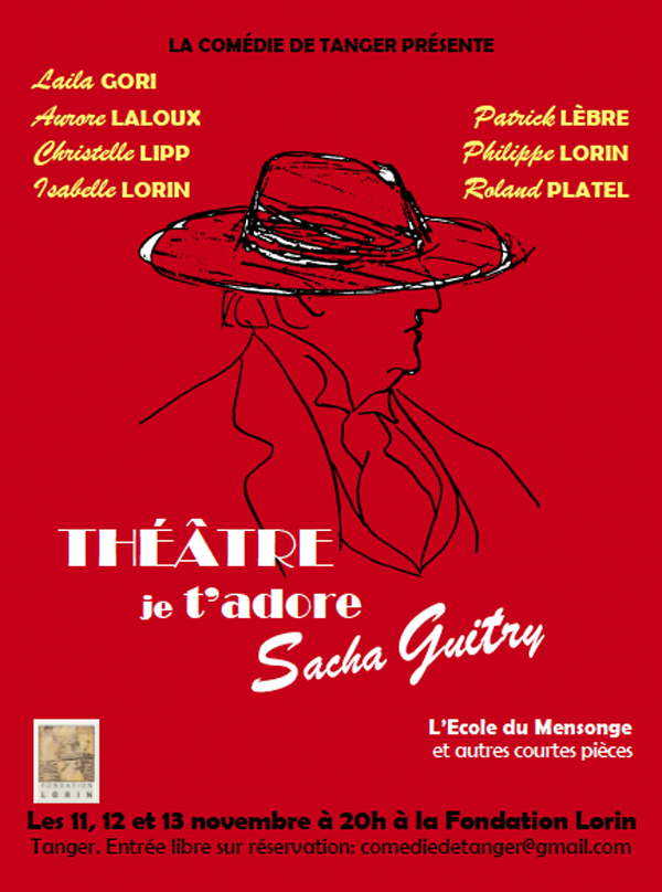 La Comédie de Tanger présente « Théâtre Je t’adore », une pièce de Sacha Guitry les 11, 12 et 13 novembre à 20h à la Fondation Lorin, Tanger.