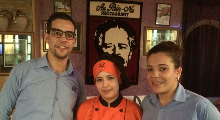 Omar, Meriame, Ouafae l’équipe de jour du restaurant « Au pain nu » vous accueillera pour le déjeuner dans une ambiance cosy, un peu sombre et quelque peu surannée. Il ne faut pas avoir peur de pousser la porte de cet endroit un peu mystérieux…