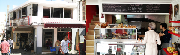 Le bistrot est très bien situé dans le bas de la place du Petit Socco à l’endroit où la rue bifurque vers la gauche pour descendre vers la mosquée et le port. Vous ne pouvez pas le manquer. Un rez-de-chaussée comptoir avec terrasse extérieure, un étage qui offre une belle vue sur la place et la célèbre rue Siaghine. Un projet : ouvrir une jolie terrasse au dessus au printemps prochain.