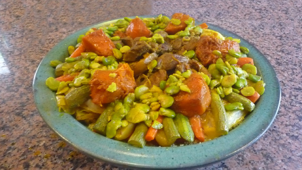 l’agneau, les oignons. (Vérifier s’il y a suffisamment de jus et au besoin ajouter un peu d’eau chaude.)