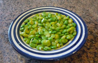 – Décorer avec les fèves passées 1 mn dans le bouillon chaud.