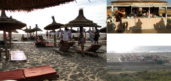 Il y a trois ans, le restaurant l’Océan ouvrait sa plage d’été. C’est presque comme Le club 55 ou la voile rouge de Saint-Tropez à Tanger… L’endroit est magique. Ambiance calme et tranquille en semaine. Ambiance Saint Trop le week-end. Il y a des matelas pour le farniente, des paillotes pour l’ombre et des petites tables pour boire ou manger. Thé à la menthe, eau fraiche, vin blanc, bière, mojito… accompagnés de petites choses délicieuses… Après le bain dans les vagues – attention l’océan est dangereux – on peut même prendre une douche ou aller aux toilettes! A profiter seul, entre amis ou en famille.