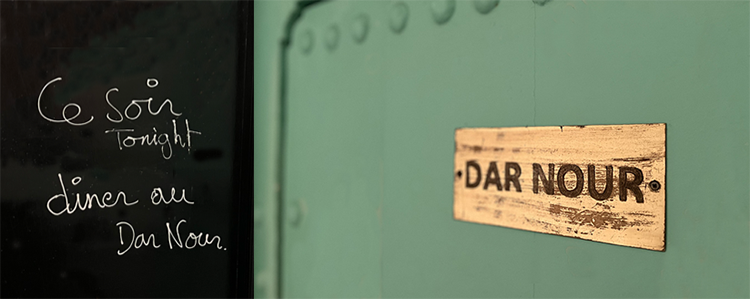 C’est nouveau. La maison d’hôtes « Dar Nour » vient d’ouvrir son restaurant. Un lieu cosy pour dîner en toute tranquillité, en famille, entre amis ou en amoureux dans un charmant espace au rez-de-chaussée de la maison avec une cuisine du marché concoctée par le Chef Abdellah…