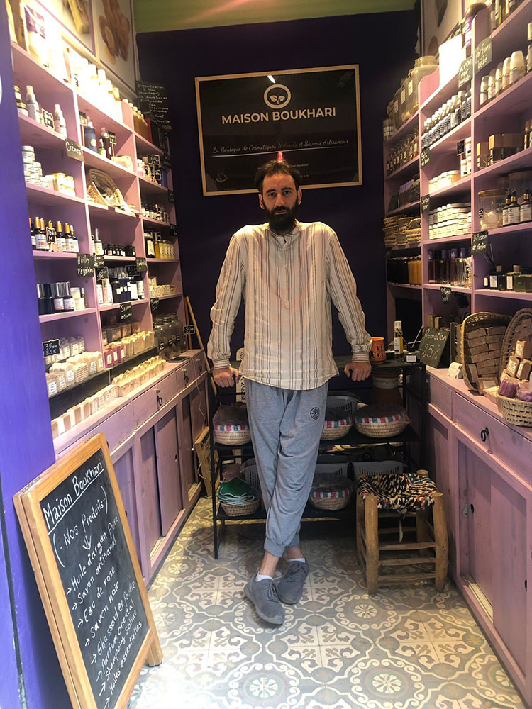 Anas est savonnier, parfumeur et cosméticien. Il est fier de fabriquer dans son laboratoire désormais certifié ISO des produits de qualité, faits à partir de matières premières du terroir trouvées au Maroc, souvent auprès des coopératives de femmes dans les campagnes.