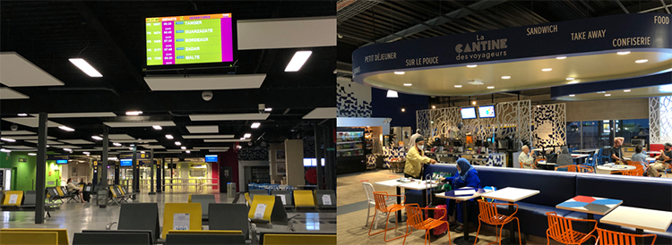 La zone de départ est vide, seul un distributeur de boissons clignote au loin, tout est fermé mais elle se remplit très vite et la « Cantine des Voyageurs » ne va pas tarder à ouvrir.