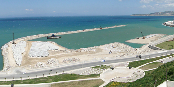 Construction des infrastructures de base du nouveau port (digues de protection, quais et terre-pleins). Les travaux ont été entamé en juin 2011 pour être achevés en juin 2013.
