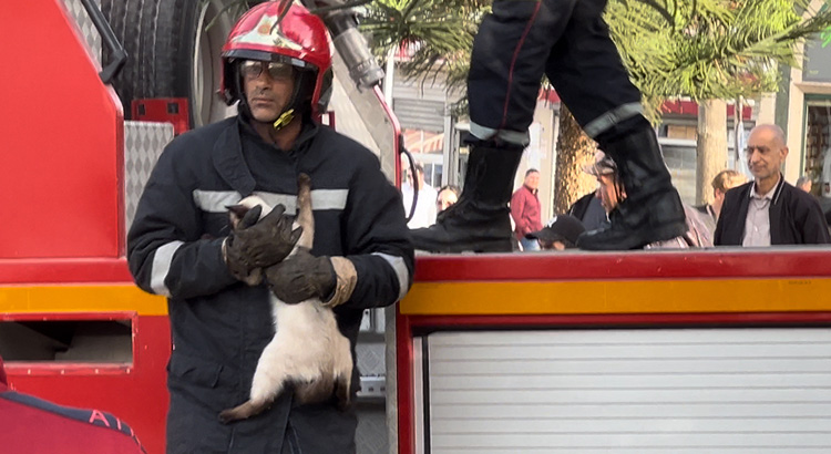 Sauvetage spectaculaire d’un siamois place du Grand Socco.