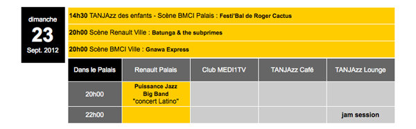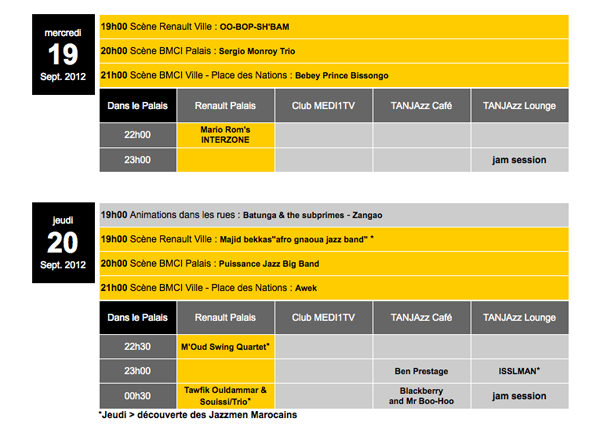 Jusqu’au 23 septembre, l’édition 2012 du Festival Tanjazz accueillera rythmes et sonorités jazzy au Palais des Institutions Italiennes, à Tanger.