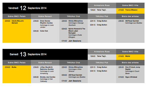 Et maintenant découvrez le programme complet de Tanjazz du 10 au 14 septembre 2014
